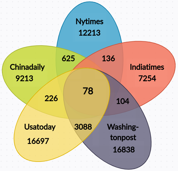 - Distribution of country-wise coverage of events by the outlets. (a) English news outlets.